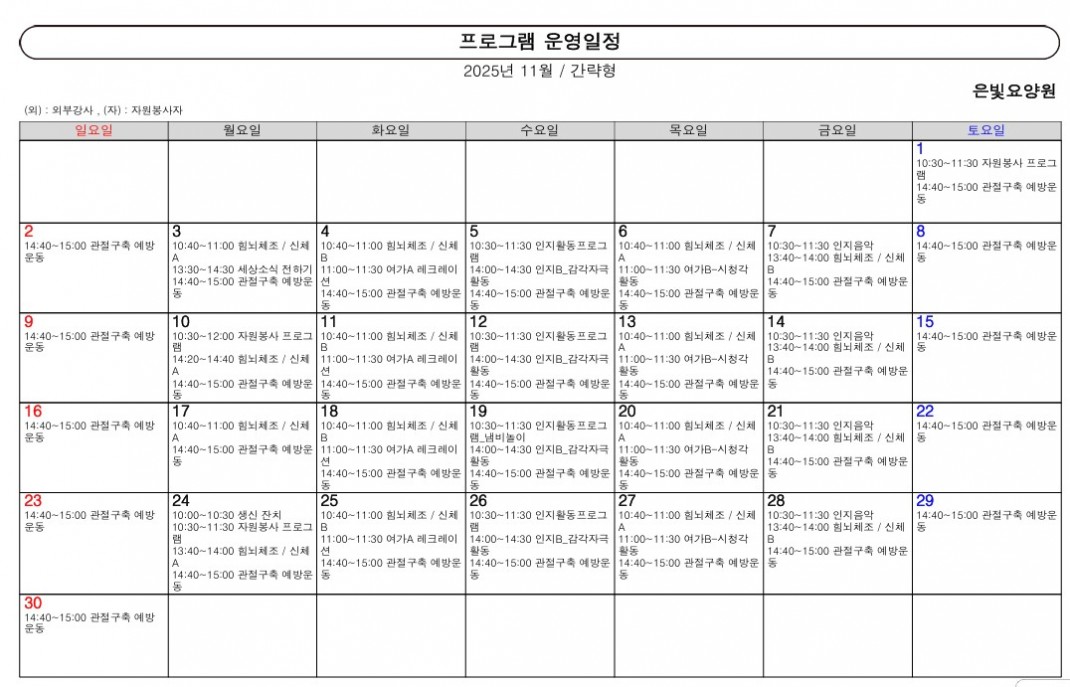 2025년 11월 프로그램 일정
